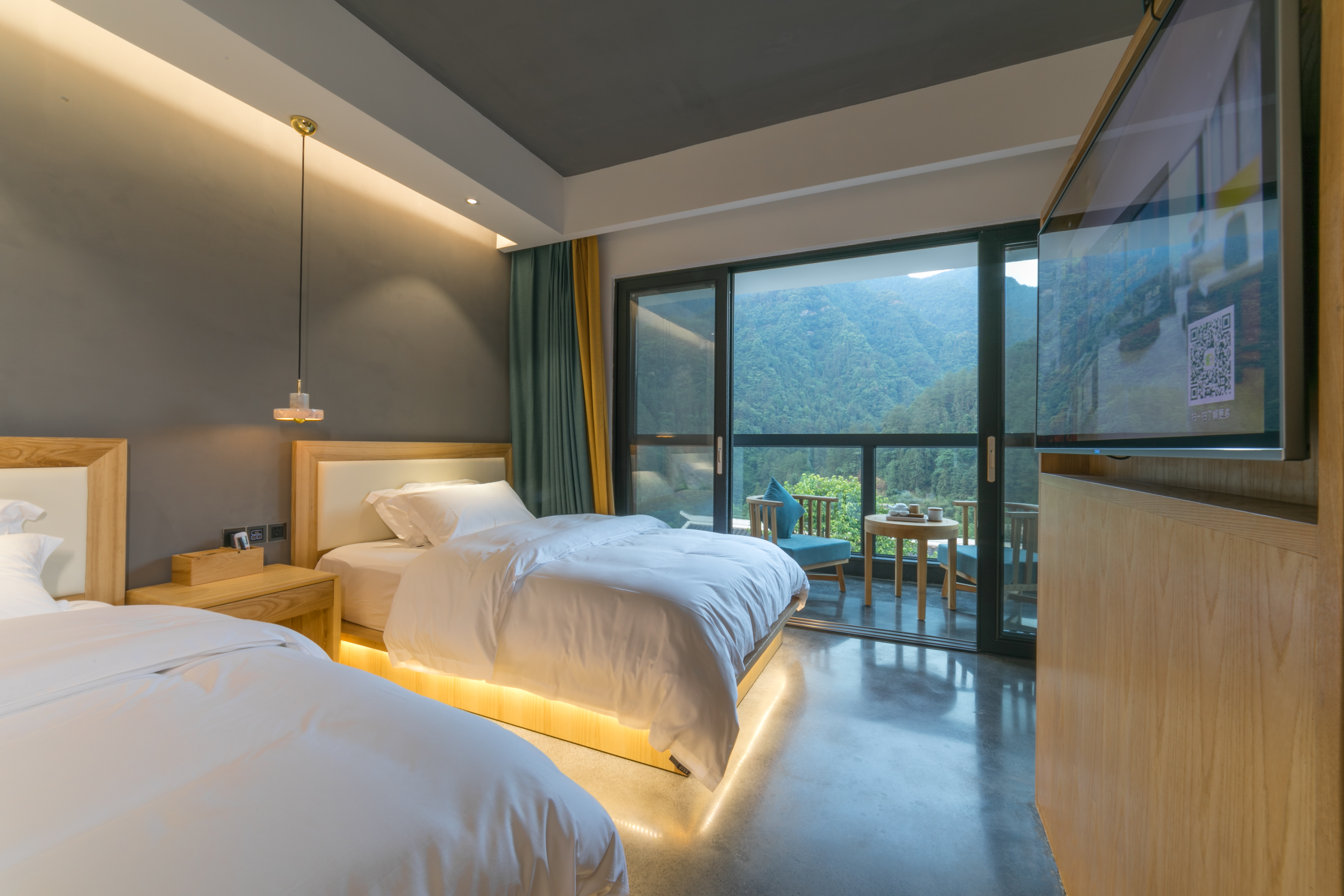 拾年·陽臺山景雙床房(輕奢浴缸+智能馬桶+智能窗簾)